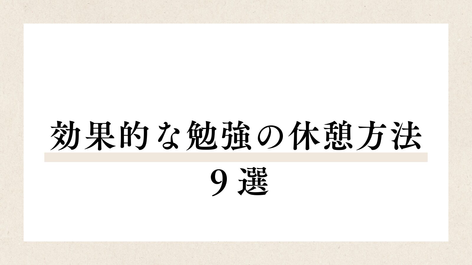など、効果的な勉強の休憩方法について知りたいと思う人も多いと思います。